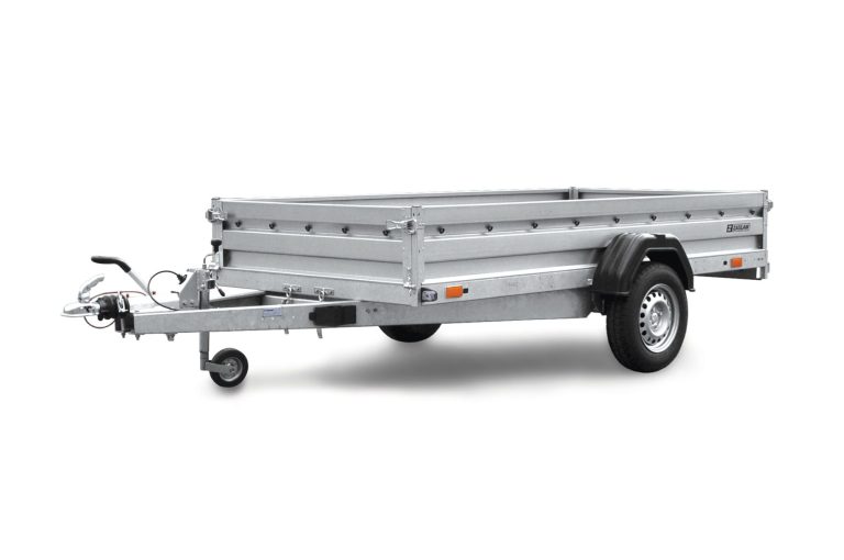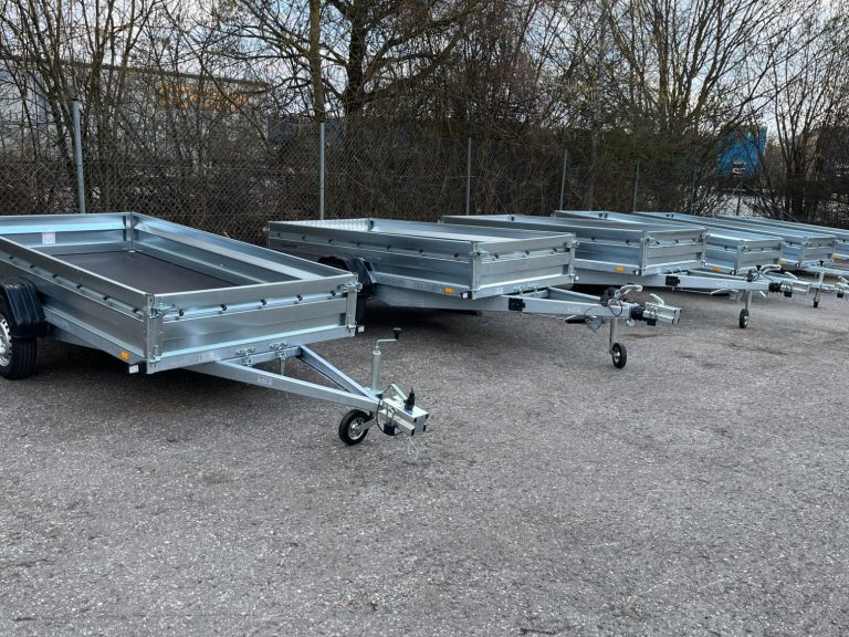Ein Gesamtgewicht von 1.300 kg weißen unsere gebremsten Anhänger auf. Unsere Anhänger sind mit einer 12-V Anlage und einem 13-PIN-Stecker ausgestattet.